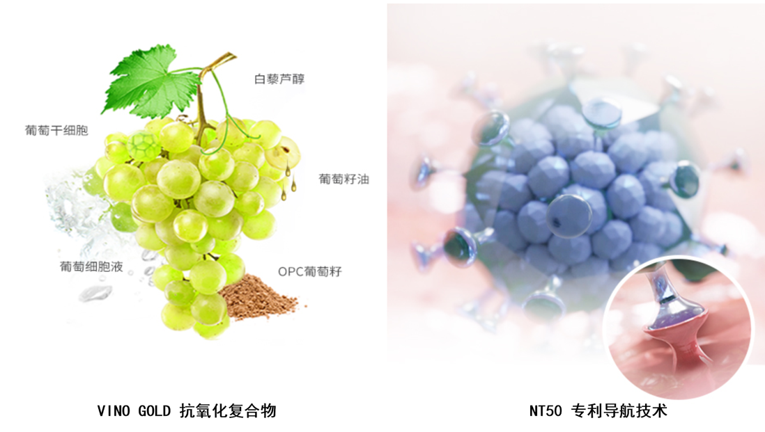 旗下产品The VINO GOLD葡萄籽系列为皮肤提供很好的保护,对抗外部负面的环境影响和内部肌肤的氧化。获得专利的抗氧化复合物含有OPC(葡萄籽)--OPC是最强大的天然抗氧化剂之一,可以保护肌肤免受自由基的形成和作用;RESVERATROL PREMIUM NT50则是M.Asam美肤家族中最精致最高端的的呵护肌肤系列,创新的白藜芦醇搭配透明质酸的配方使肌肤看起来更加年轻光滑。独特的NT50导航技术被证明可以将细胞活力提高50%。高浓缩的白黎芦醇被NT50导航技术直接输送到肌肤细胞中,刺激肌肤中青春酶再生。抚平脸部皱纹,激发胶原蛋白再生,保护细胞,提亮肤色。